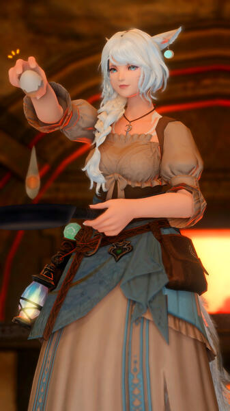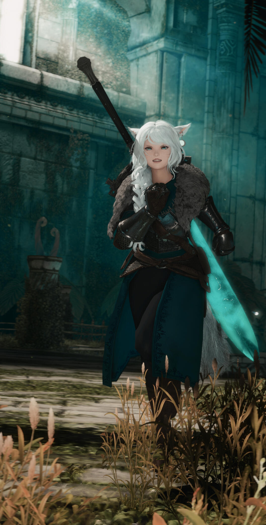 When the young Miqo'te came of age, she made a decision to act on this desire and set out from the Shroud. Before her departure, though, her family gifted her its blessing and its most treasured heirloom: a large, magical greatsword said to have been hewn from a colossal ice crystal, and long-rumored to have been bestowed by the goddess of love herself to one who unwaveringly defended her ideals.Ever since, Selena has followed her dream and frequently journeys through the realm of Eorzea and to lands beyond, taking great pleasure in meeting new folk and doing everything she can to help good people in need. Though hers is a gentle heart, she stands ready to fight if a peaceful solution is unreachable.